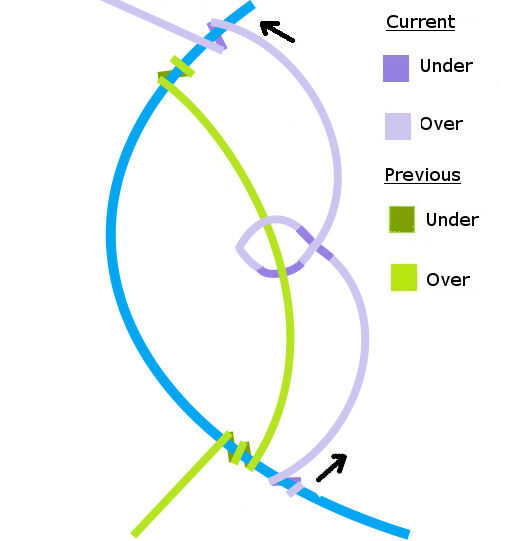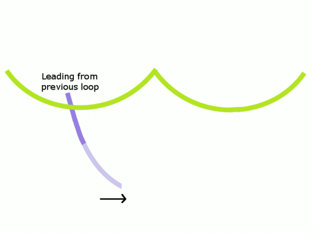 - Cuando el bucle es el tamaño y la forma que desee, tire del cable en la dirección opuesta, creando un pequeño bucle alrededor de la escala anterior.