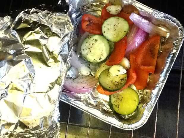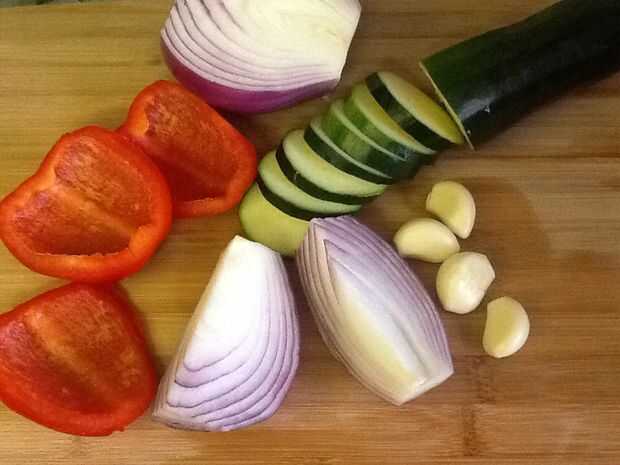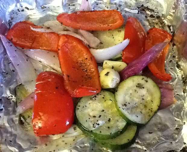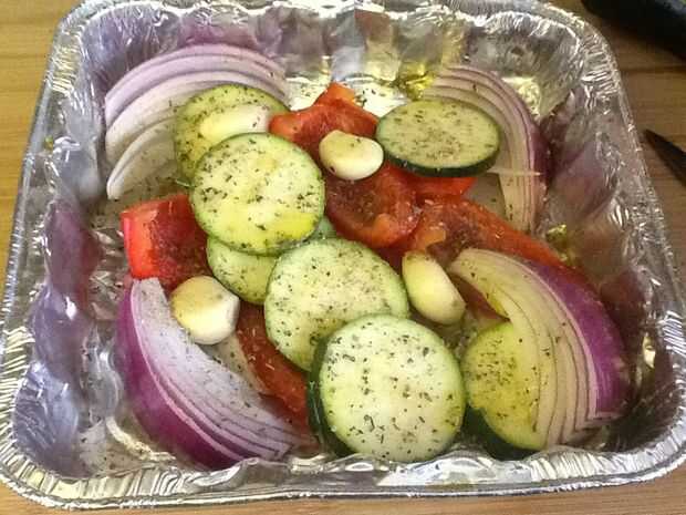 Cortar verduras en trozos de tamaño similar. Mezcle con el aceite de oliva, ajo clavo de olor, sal y pimienta, orégano seco y albahaca (o lo que usted prefiere). Tapar con papel de aluminio y cocinar en 450 F durante 15 minutos. Retire el envoltorio, revolver, cocinar por otros 15-20 minutos, o hasta que esté listo a tu gusto.
