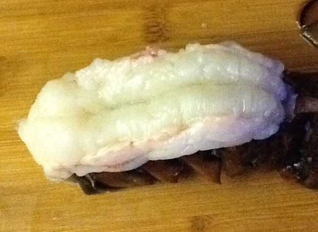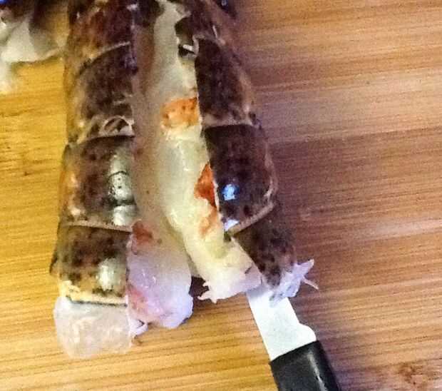 También por primera vez para mí, estas colas de langosta fueron un poco más trabajo que esperado. Cortar las cáscaras y el aflojamiento de la carne, sin destrozar, no es tan fácil como se ve en YouTube. Elegí el método de cocción más simple, al vapor, para que sea menos intimidante para mi primer intento, aunque asado parece ser más popular.
