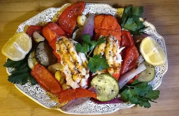 Paso 4: Qué una captura vapor colas de langosta con horno asan verduras