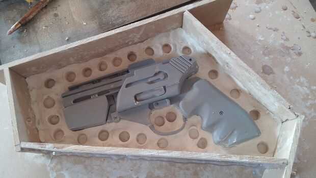 (Nota: realmente rompió el disparador durante la fase de claying. Pasé unos 10 minutos frustrado y enojado. Entonces me di cuenta que no había manera para evitar atrapar aire al lanzar, y que era mejor de crear un molde de verter de una sola pieza de él por separado de todos modos. A veces errores resultan mejor)