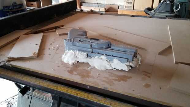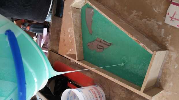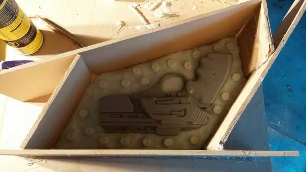 Por último, la construcción de su caja. Usé MDF. Los bordes se sellan con pegamento caliente. La caja debe hacerse de un material que no absorbe la silicona. MDF funcionaba bien aquí, pero probablemente no era la mejor opción. Para la caja de molde del disparador, utilicé trozos de una caja de salvado con pasas de uva con la superficie exterior hacia sin problemas.