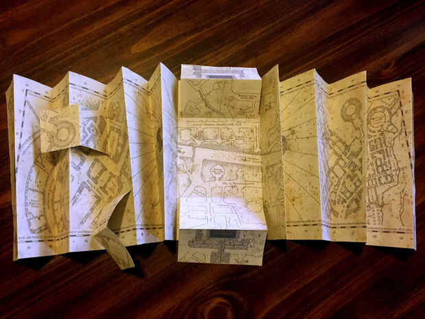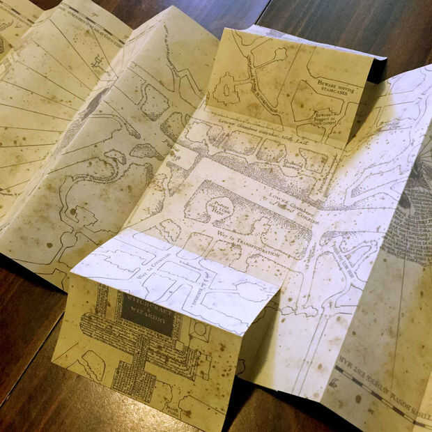 Para el papel de 8.5 x 11 pulgadas, descargar marauders_map.zip. Para papel de tamaño A4, descargar a4_marauders_map.zip.