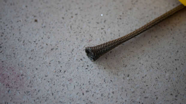 Utilice un lápiz o similar para empujar el extremo de la manga regresa el sí mismo como se muestra arriba. Mangas trenzadas tienen a desentrañar a sí mismo si maneja demasiado o si no está caliente fusionado al final.