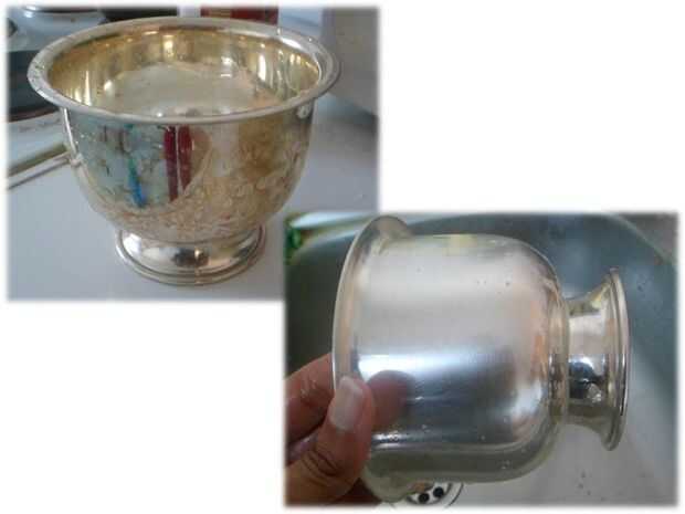 Si tiene muchos artículos de plata y queremos limpiar todo de una vez. Tomar un gran vessel.place un papel de aluminio.