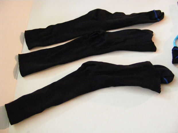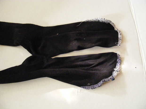 Coser uno para unir los tubos de dos calcetines.
