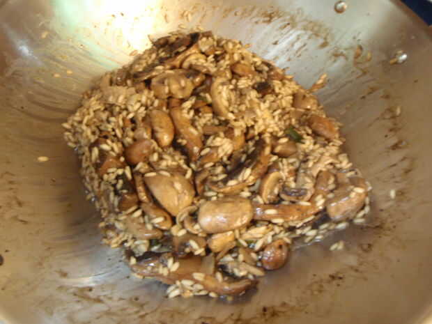 Necesita probar el arroz periódicamente. Cuando ya no cruje entre los dientes, está casi listo. Dejar de añadir el caldo y cocinar la parte sobrante.