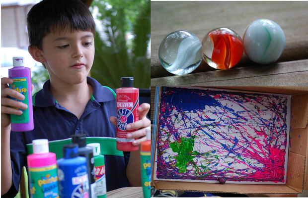 ¿Nunca pintar con canicas? Si no lo has hecho, deberías realmente! Es una manera grande, divertida, floja para pintar. Actividad ideal para niños jóvenes y adultos incluso disfrutarlo. Sin talento arte requerido! Se llega a soltar control y ver que pasa y no 2 pinturas son siempre los mismos.