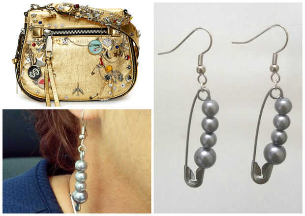 Vi el bolso de Marc Jacobs mientras que ojeando una revista y amaba los detalles de la misma. Pensé que las perlas en los alfileres de seguridad haría un pendientes par fresco. Miré en su web para ver que si tenían un pendiente en este estilo, lo hicieron. El punto del precio era un poco alto para un elemento que puedo utilizar una vez para una sesión de fotos, así que pensé que podría hacer un inspirado par con elementos ya en mi suministros de fabricación.