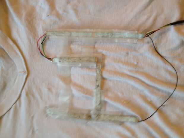 Coloque luces cara abajo sobre la camisa y comenzar a coser los leds a la camisa de enhebrar la aguja a través de la cinta y la camisa,