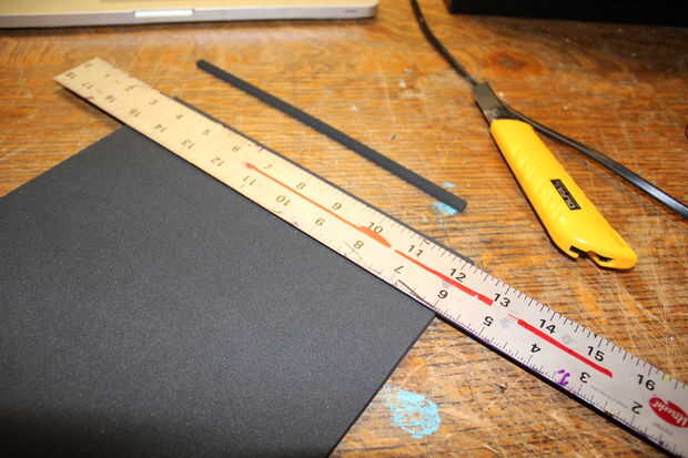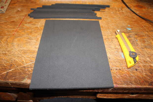 1. Cortar la espuma en tiras cuyos anchos son iguales para el grosor de línea que desee utilizar en su diseño. Use una regla y un cúter afilado. Recuerde que es mejor hacer múltiplos la luz pasa con el cortador de la caja que al poder a través de uno.