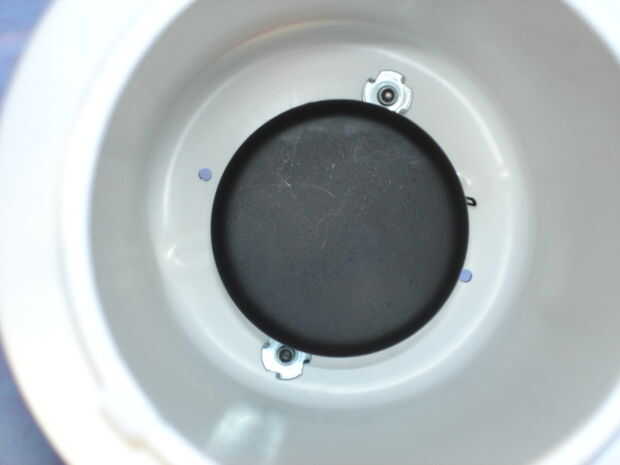 Este es de lejos el paso más difícil. Los controladores exigen un recorte circular 71mm. Centro de la Junta suministrada, cinta en el lugar y marque un corte con un marcador permanente. El plástico es resistente. No me gusta los cortes a mano alzada con una navaja. Mi Dremel con el accesorio de la fresadora corta un agujero bastante decente. Para perforar con precisión el altavoz de los agujeros de montaje, coloque el altavoz en el recorte, centro y asegure con cinta y luego perforar los agujeros de la brida de altavoz desde la parte superior en la caja de envase a continuación. Sólo tenga cuidado y no deslizante y dañar el cono del altavoz o surround. El altavoz se fija con métricos máquina de tornillos de cabeza hexagonal (#4/.70) con una tuerca de montaje frentes instalado al revés. Cuando monte el altavoz más adelante, un taco de madera largo le permite sujetar la tuerca en su lugar mientras se aprieta el tornillo.