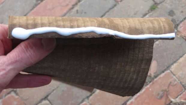 Poner una línea de pegamento en un extremo para sujetarlo, luego envolver alrededor de la manija de la escoba (con el extremo pegado dentro) para formar un rollo.