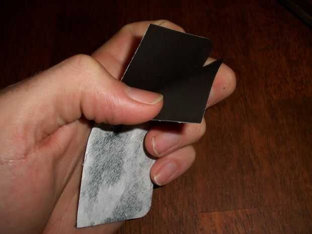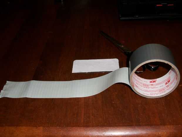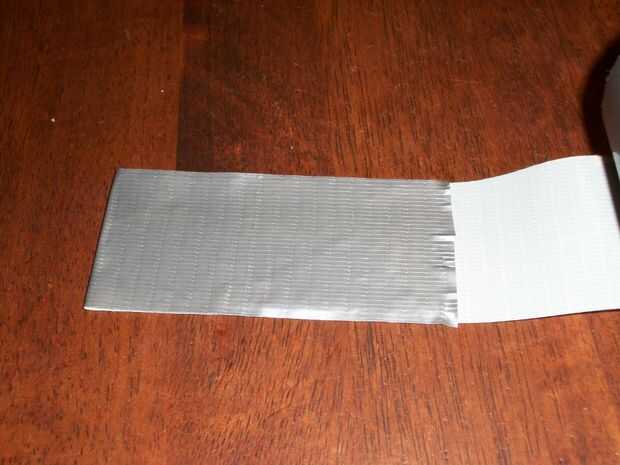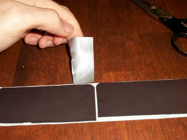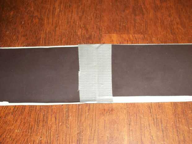 Estirar la cinta igual a dos veces la longitud del imán. Coloque el imán hacia abajo. Pliegan. Corte la cinta de conducto adicional. Abra el imán. Cortar un trozo de cinta adhesiva en el centro. Coloque la cinta en medio de los dos imanes.