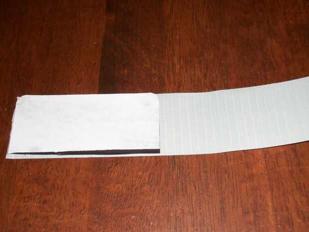 cosas necesitarás una regla, alguna cinta, un cuchillo del exacto o tijeras, una tabla de cortarPaso 1: 2 cortar tiras de 6 pulgadas. A continuación tome una de las tiras un flip sobre manera que el lado adhesivo quede hacia arriba. Entonces la otra
