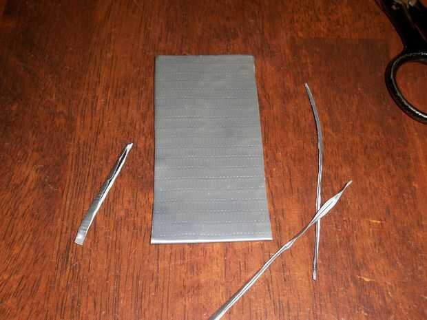 cosas necesitarás una regla, alguna cinta, un cuchillo del exacto o tijeras, una tabla de cortarPaso 1: 2 cortar tiras de 6 pulgadas. A continuación tome una de las tiras un flip sobre manera que el lado adhesivo quede hacia arriba. Entonces la otra