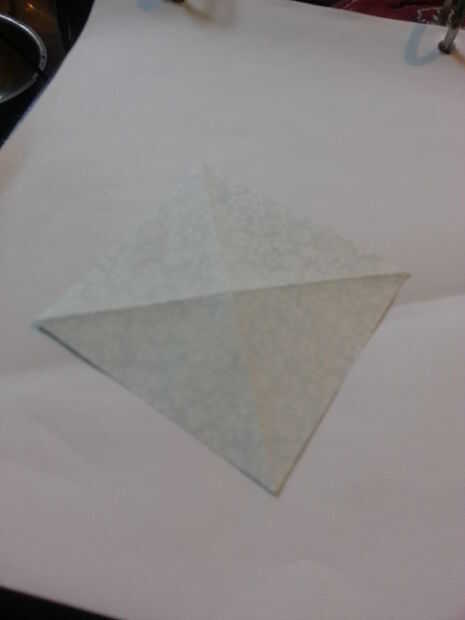 necesita primero doblar los dos puntos juntos. a partir de ahí desplegar y doblar los otros dos puntos juntos. no revelar para proceder a doblar dos