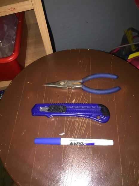 Los materiales que usted necesitará son un marcador delgado, alicates y un cuchillo