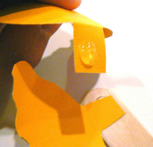 Añadir un poco de pegamento a la parte posterior de la cola doblada de los pétalos y capa en el palo.