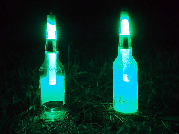 Mediante la adición de sal o azúcar a la botella son difundir la luz y crear un brillo suave y lumínica. Los palillos del resplandor LED ya tienen un filtro difuso en la varita, pero añadiendo otra capa dentro de la botella crea un resplandor agradable y temperamental a su camping.