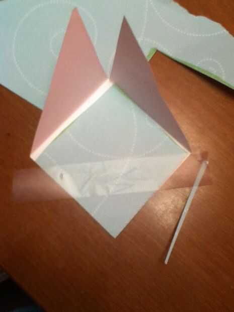 Se necesita papel de construcción.Paso 1: Paso 1 Primero 3 plazas en un pedazo de papel y corte dos las superior a la mitad.Paso 2: Paso siguiente. Doble en los dos triángulos como se muestra.Paso 3: Paso siguiente Pegan y añadir decoración.