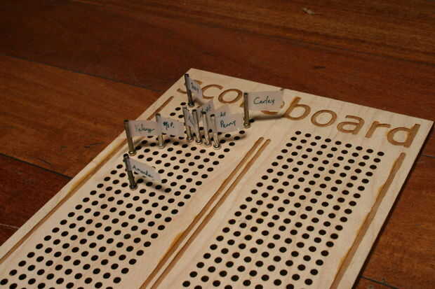 Cribbage es un juego de cartas grandes (lleno de jerga extraña, como cuando llegas a gritar "Muggins su pomo!" en tu abuelo) con marcador guardado en un tablero de clavija de madera clásico. Hay algunos buenos Instructables para hacer tableros