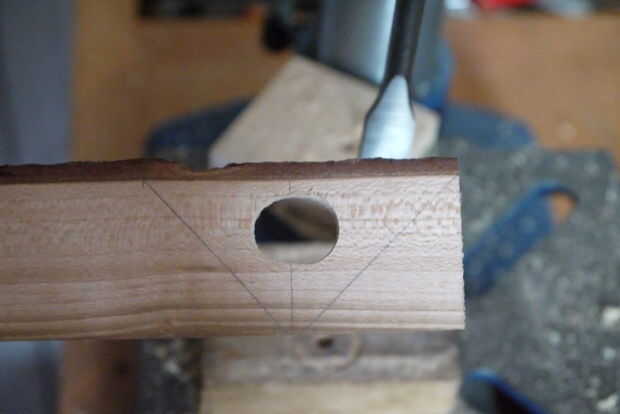 Después de la perforación puede probar el ajuste, ajustar y cortar el triángulo con su opción de la sierra.