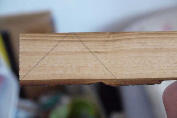 Dibujar una forma de triángulo isósceles. Es importante el ángulo en la punta, va a ser la parte que presiona contra el libro. Empecé con un ángulo de 90° y luego hizo un poco más grande (aprox. 105°) más cómodamente, usted debe encontrar un ángulo que te gusta y ve por ella!