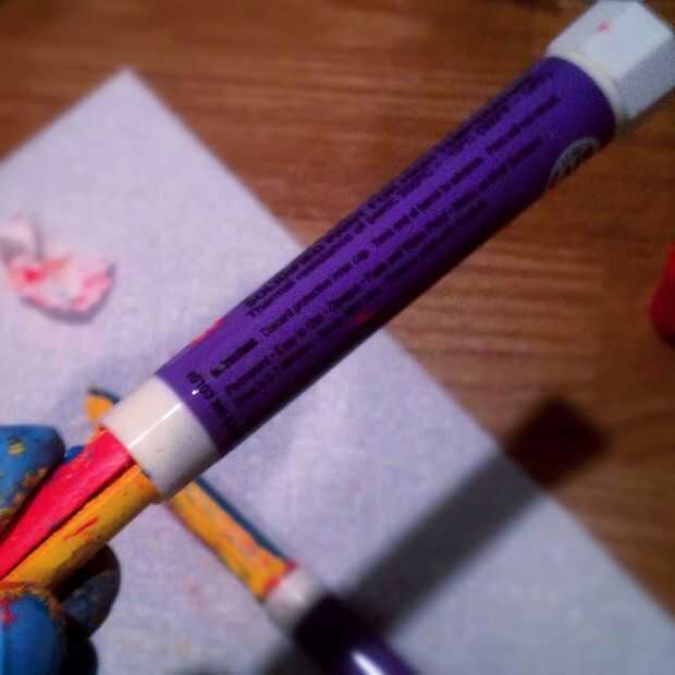 7 utilice una toalla de papel para limpiar el cuerpo del marcador y el separador. trate de eliminar todo rastro de pintura en el cuerpo con una toalla húmeda. Utiliza el X-acto para raspar el separador limpio y luego limpie con una toalla.