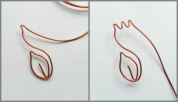 Después de pasar la hoja, crear el primer pétalo de tulipán con la ayuda de los alicates de punta plana.