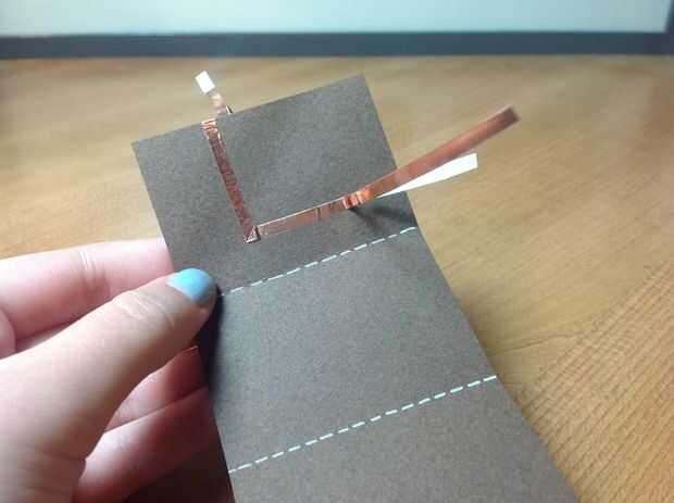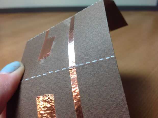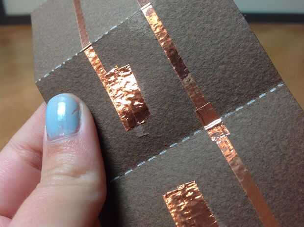 3. esto es realmente complicado para coger, pero una tira de la cinta de cobre puede se dividido en uno de los pliegues. Para repararlo, sólo tiene que colocar otro pedazo de cinta de cobre en la parte superior.