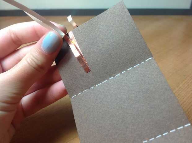Doblar hacia atrás la cinta de cobre y hacer un pequeño pliegue con el dedo y luego doblar en la dirección que desea ir. (Creo que las fotos serán mejores en explicar esto que una descripción)