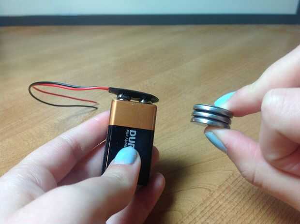Si quieres puedes usar un 9V con un broche de batería y soldar a la cinta de cobre, como en la foto. PERO, hay una mejor manera! No quería tener una batería de 9V pesados colgando de mi libro cada vez que lo uso, por lo que he creado una caja de batería que conecta 3 3V batería de botón serie. Me encanta esta pequeña caja de la batería y usarla para todo tipo de proyectos ahora. La batería de botón que utilicé para el diseño de la caja para es 2cm de diámetro y 1cm de espesor cuando se colocan todos juntos. Para medir la batería para asegurarse de que encajan en el cuadro porque necesitan ser realmente cómodo.