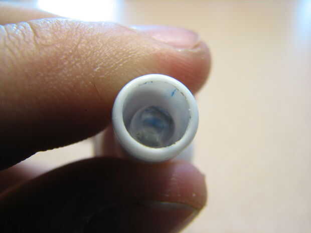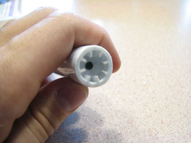 En este punto el marcador es completado, pero en orden para que funcione perfectamente hay que limar la parte inferior. Esto permitirá la tapa para presionar firmemente y asegúrese de que la luz permanece encendida mientras está en uso.