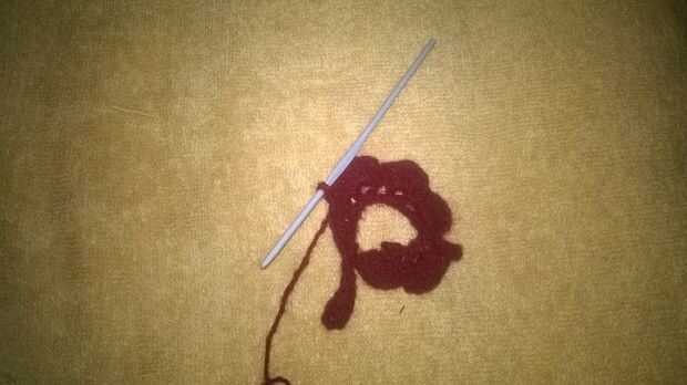 Fila 2: Cadena 3, a su vez, 5 doble crochet en primera