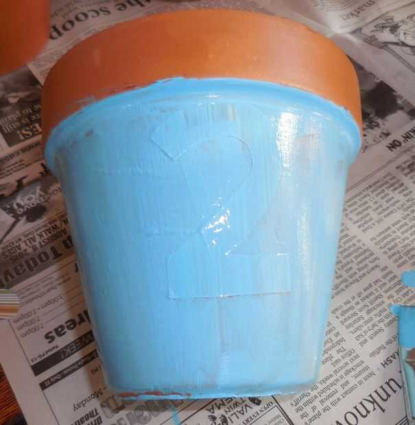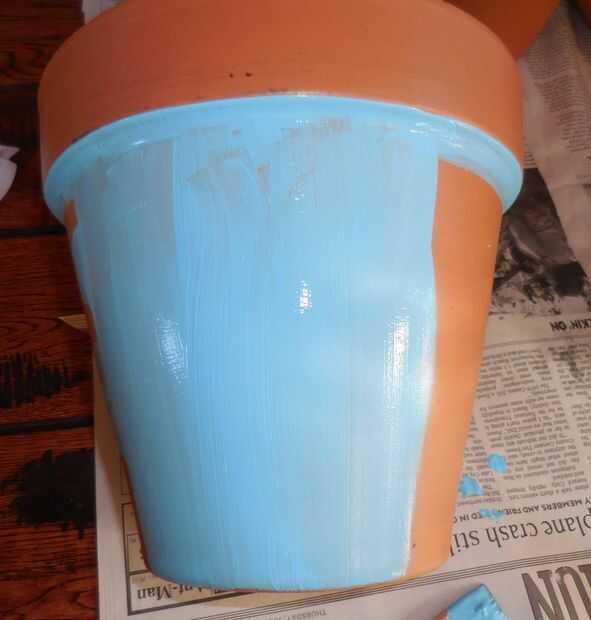 Pintar las macetas en el exterior todo el camino alrededor y el borde de dentro y por fuera