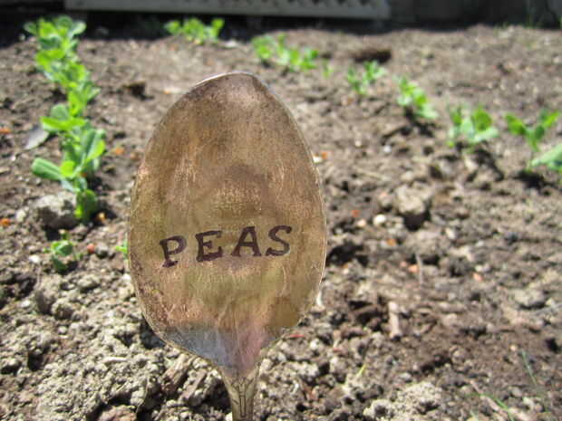 Una vez que todos los utensilios son aplanados, puede utilizar un marcador permanente de punta fina para escribir los nombres de sus plantas y flores en ellos. Escriba en la parte superior del tenedor y la cuchara, pero en el mango del cuchillo, ya que es más grande que la hoja y por lo tanto más difícil en la tierra. Ahora puede utilizar las nueva marcadores de la planta como acentos en macetas, o para evitar las malezas confusas con los tomates de la herencia en sus primeras etapas de la vida. De cualquier manera, disfrutar y divertirse por ahí todos los pulgares verdes! No olvide el protector solar!