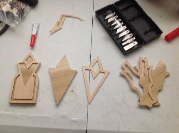 Esta vez trazó un contorno en la madera de balsa ya que esta vez tendrá que rastrear el interior piezas de los iconos. No sé si se puede saber pero en la segunda imagen se puede ver que he pulsado el contorno interno en la madera. Una vez todo esto se hace cortar el interior piezas primero (esto facilita la corte) corte el contorno exterior.