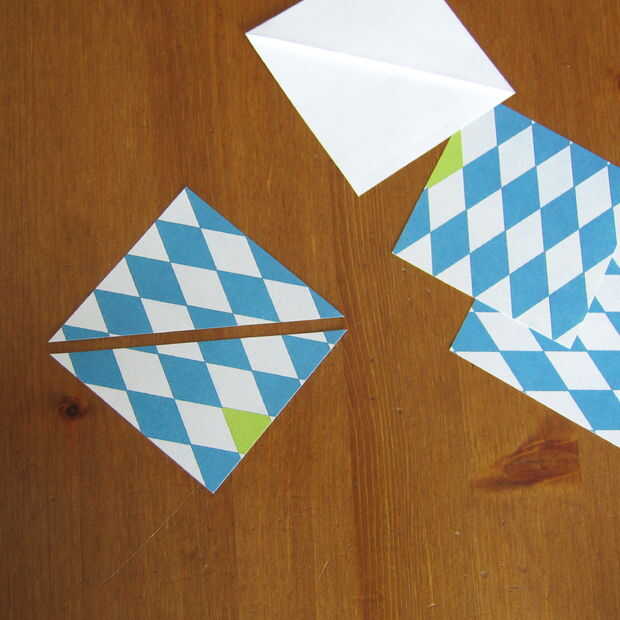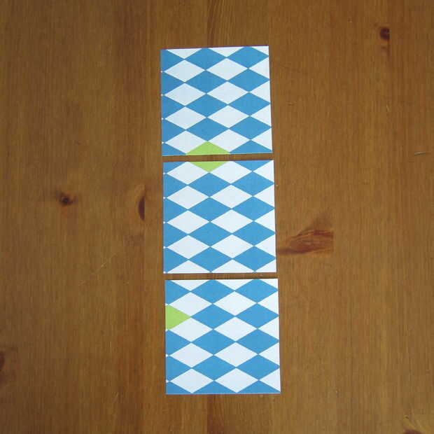 Asegúrese de que los cuadrados son del mismo tamaño que los cuadrados que ya recortes de los sobres. En este caso tres pulgadas.