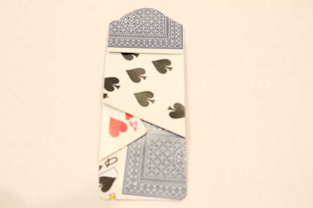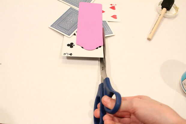 Después las tarjetas se han pegado en el marcador, esperar hasta que haya secado el Mod Podge. Luego recorte las cartas que se sobresale del papel. Aplicar una capa adicional de Mod Podge encima de las cartas.