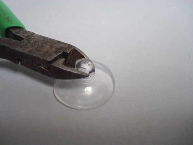 Mis ventosas vinieron con pequeños ojales.  Yo los romperé con el cortador de alambre.  Tenga cuidado de no cortar un agujero a través de la ventosa porque no se adhieren a las superficies.