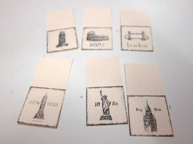 una vez que tenga toda su puso done (estaba haciendo un tema internacional, pero por supuesto puede tener monos o mobiliario de oficina, o incluso los signos de puntuación tontas he oído tanto hablar.! #$ cortar fuera. usted necesitará hacer dos veces de largo como ancho. en mi caso, con mis imágenes que 1 pulgada cuadrada, mis favoritos eran 1 pulgada de ancho y 2 pulgadas de largo.