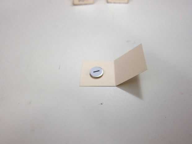 estamos casi allí! ahora necesita un sistema de imanes para cada marcador, un lado positivo y un lado negativo (o puedes encontrar una de esas cosas de la tarjeta magnética adhesiva y picar para arriba, sólo asegúrese de que los dos lados se alinean y sostener a través de una página de un libro). tengo imanes en la tienda de scrapbooking local, son de basic grey, pero por supuesto puede encontrar jobbies poco super fuerte en los internets.