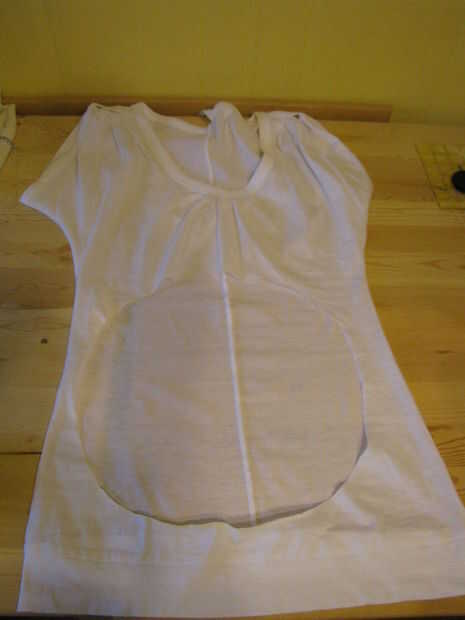 Extienda su overshirt y cuidadosamente corte el círculo que acaba de dibujar en sí mismo.