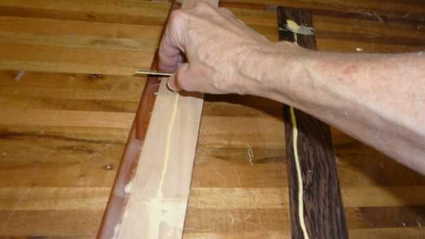 Esta es su primera cola. Usando pegamento de madera básica, extenderlo con una tarjeta de crédito en cada superficie de contacto.