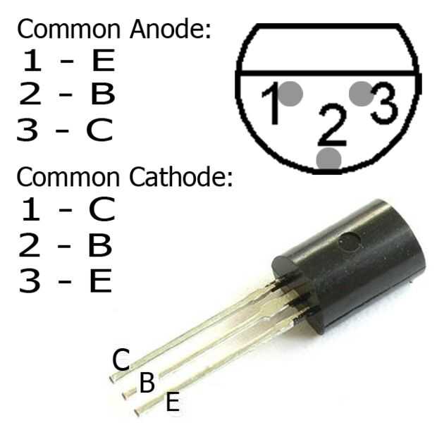 La posición de los transistores se basa en si el LED que se utilizará es ánodo común o cátodo