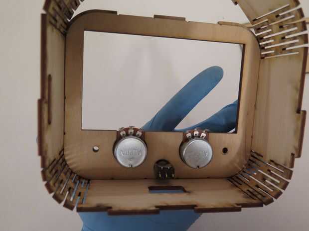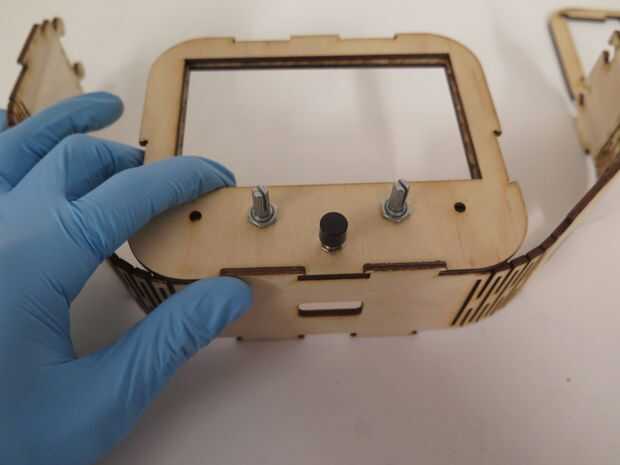 Usando el láser corte la bisagra de la vida, comienzan a envolver alrededor de las parte superior e inferior regulador las placas frontales. Esto tomará un poco de búsqueda aquí y allá pero finalmente la bisagra viva abrigo debería encajar en todas las ranuras de las placas de control.
