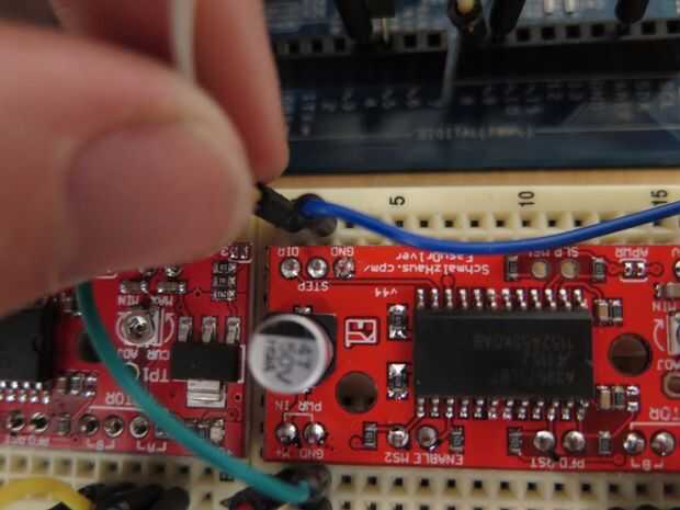 Por último, asegúrese de que su tierra están conectados y duplicar el cableado para la otra tabla, así que tienes dos controladores de motor paso a paso. Yo 4 y 5 para lo otros Dir y salidas de paso.
