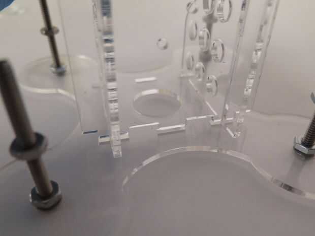 no había planeado hacer ningún trabajo adicional al placa caliente/soporte de exhibición. pero pronto se dio cuenta de que la placa era caliente el acrílico estaba mostrando señales de la deformación. Han estado jugando con el diseño de toda la seman