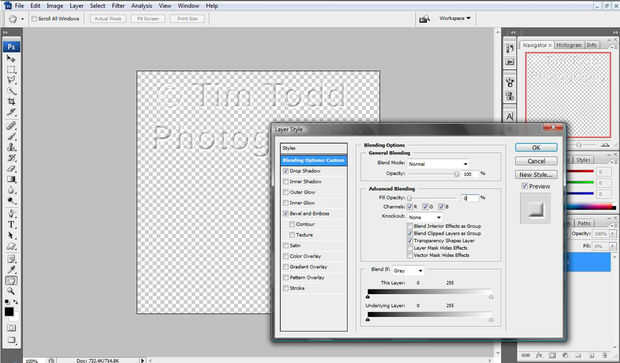 en este tutorial, explica cómo crear una marca de agua usando Adobe Photoshop.  En estos siguientes pasos son instrucciones detalladas sobre cómo crear una capa, un logotipo de derechos de autor, cuadro de texto y cómo hacer la marca de agua mezclars